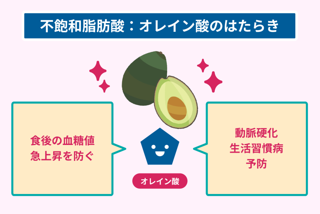 オレイン酸は胃の中に長く滞留して消化を遅らせ、食後の血糖値が急上昇するのを防ぐ働きがあります。