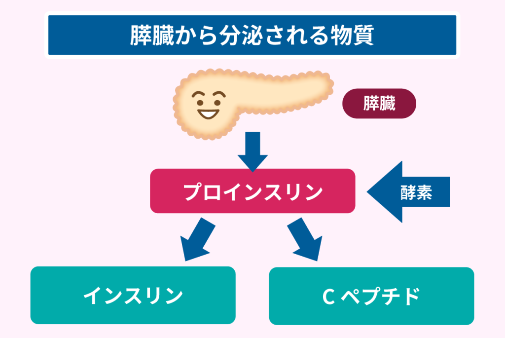 Cペプチドは、膵臓からインスリンと同時に分泌される物質です。