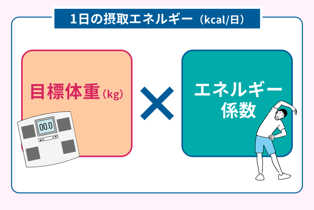 1日に必要な摂取エネルギー量は、以下の式で計算できます。