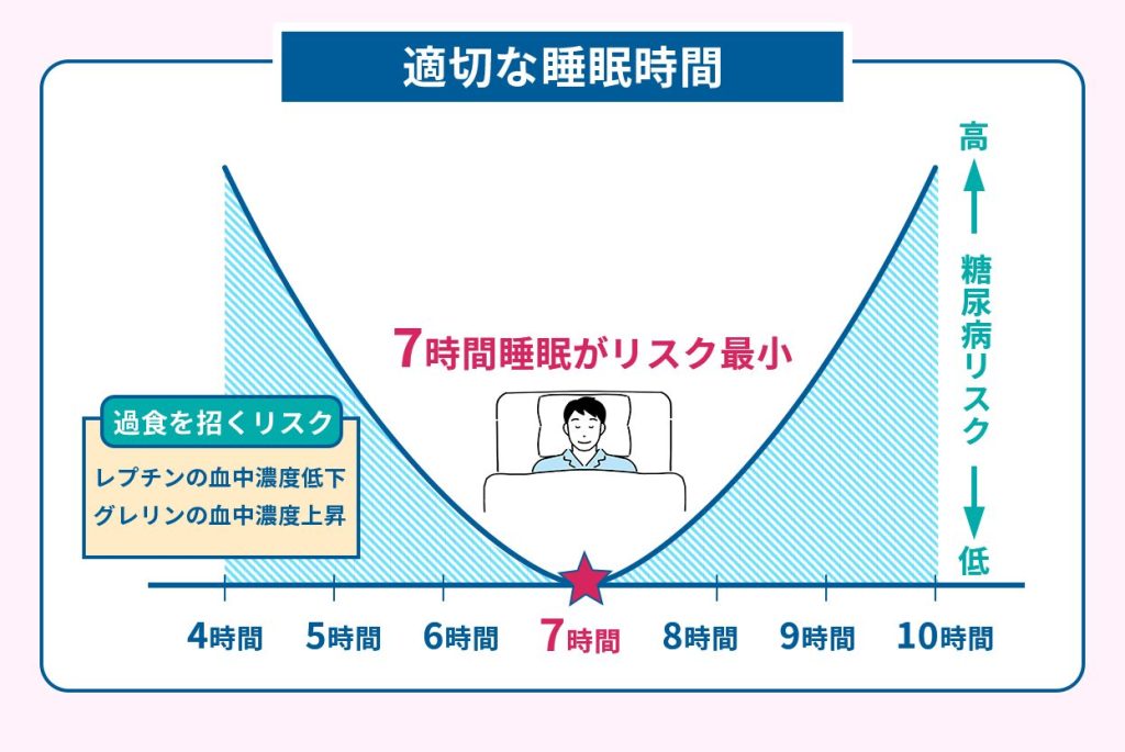 睡眠時間が7時間より長すぎても、短すぎても糖尿病のリスクは高くなります。