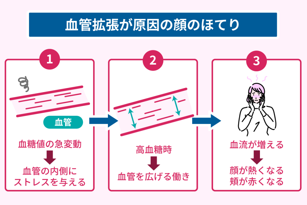 血糖値スパイクが顔のほてりを引き起こすのは血管拡張が原因