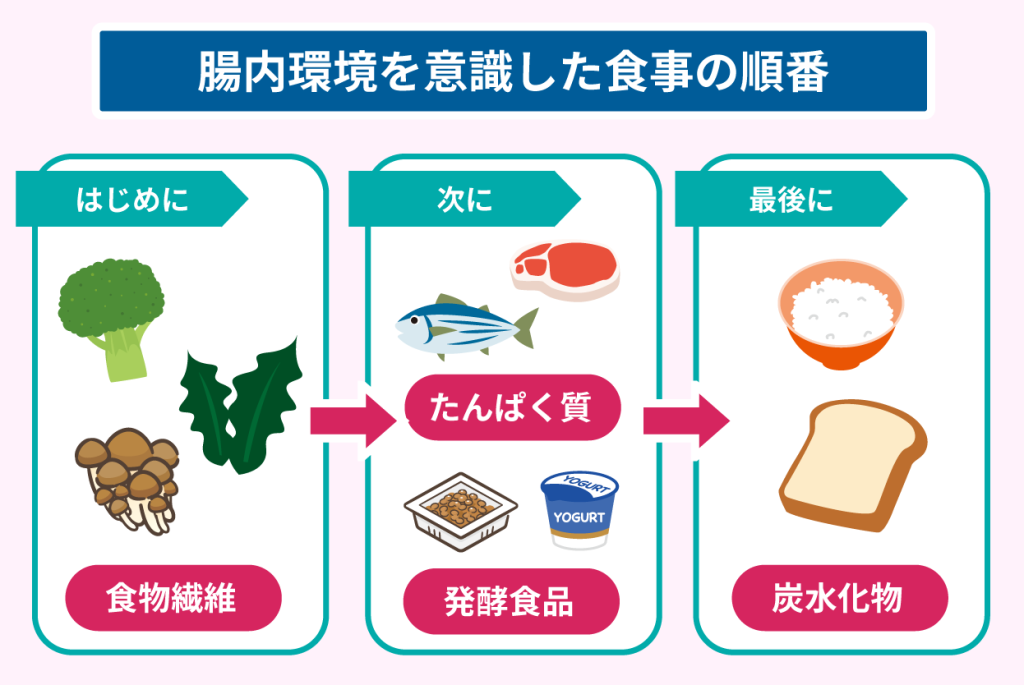 同じ食事内容でも順番を変えるだけで腸への負担が小さくなるため、無理なく続けられる工夫です。