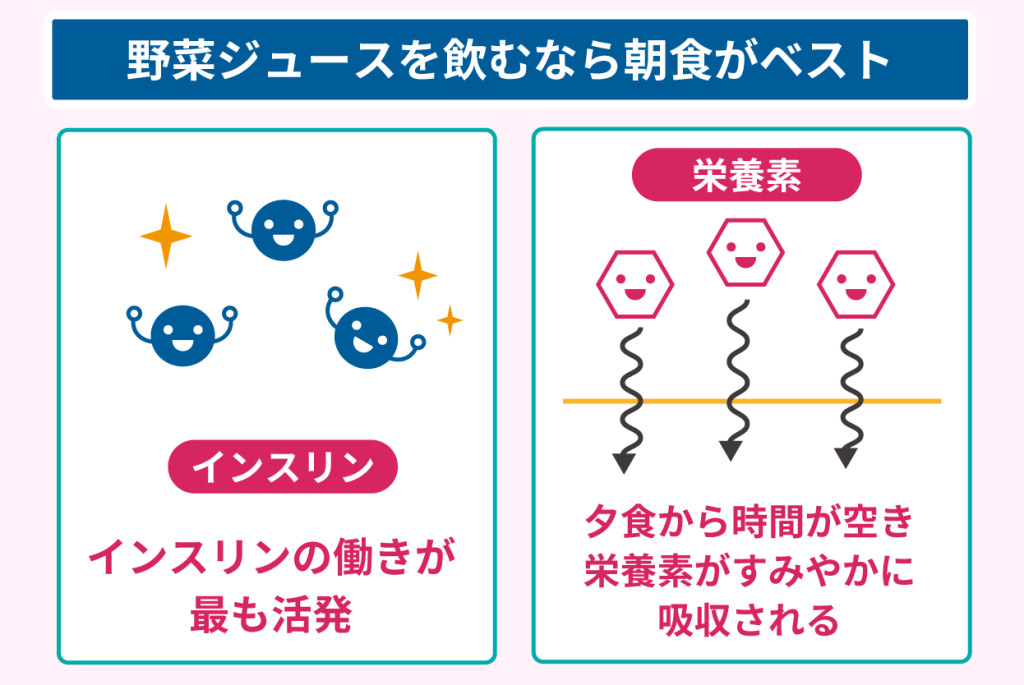 野菜ジュースの飲用は朝食が良いとされる主な理由は、以下の2つです。