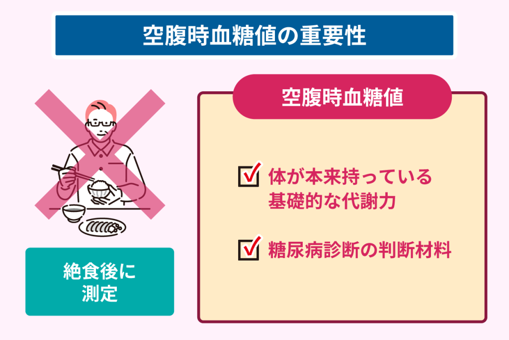 起床後すぐに測定する血糖値は、前日の活動量や食事内容の影響を最小限に抑えた検査結果となり、体が本来持つ糖代謝を反映します。